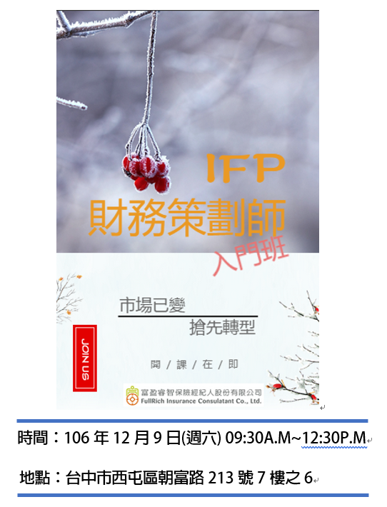 【台中開課囉!】IFP財務策劃師--入門班